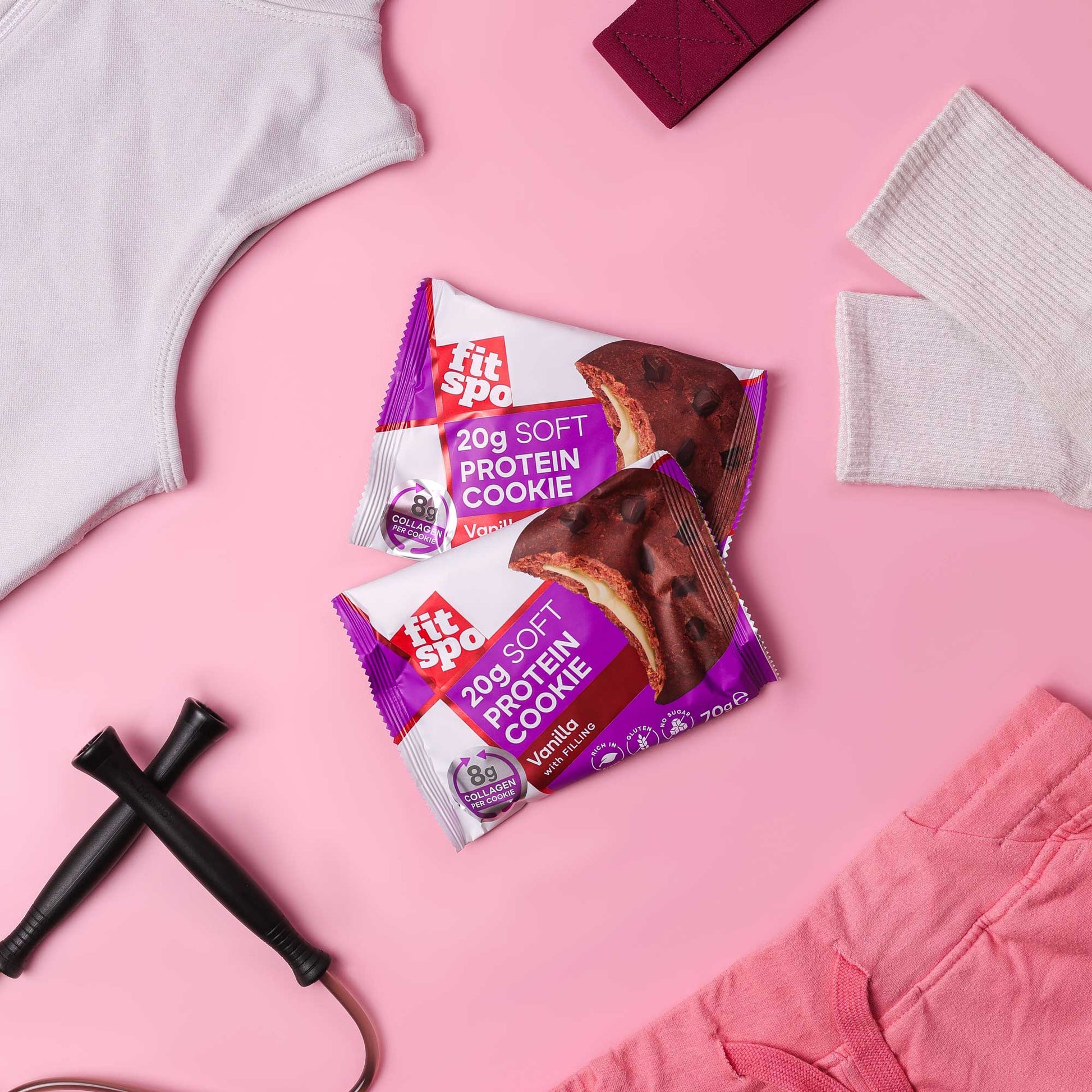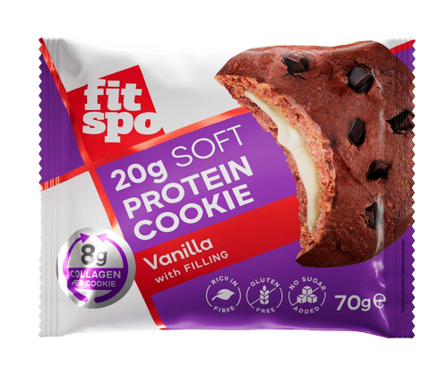 FitSpo Soft Protein Cookie Ванилия впечатлява с мекота, нежен аромат и кремообразна сърцевина. Лек и балансиран вкус, който превръща всяко похапване в момент на удоволствие – идеален за следобедно кафе, бърза закуска или след тренировка.
