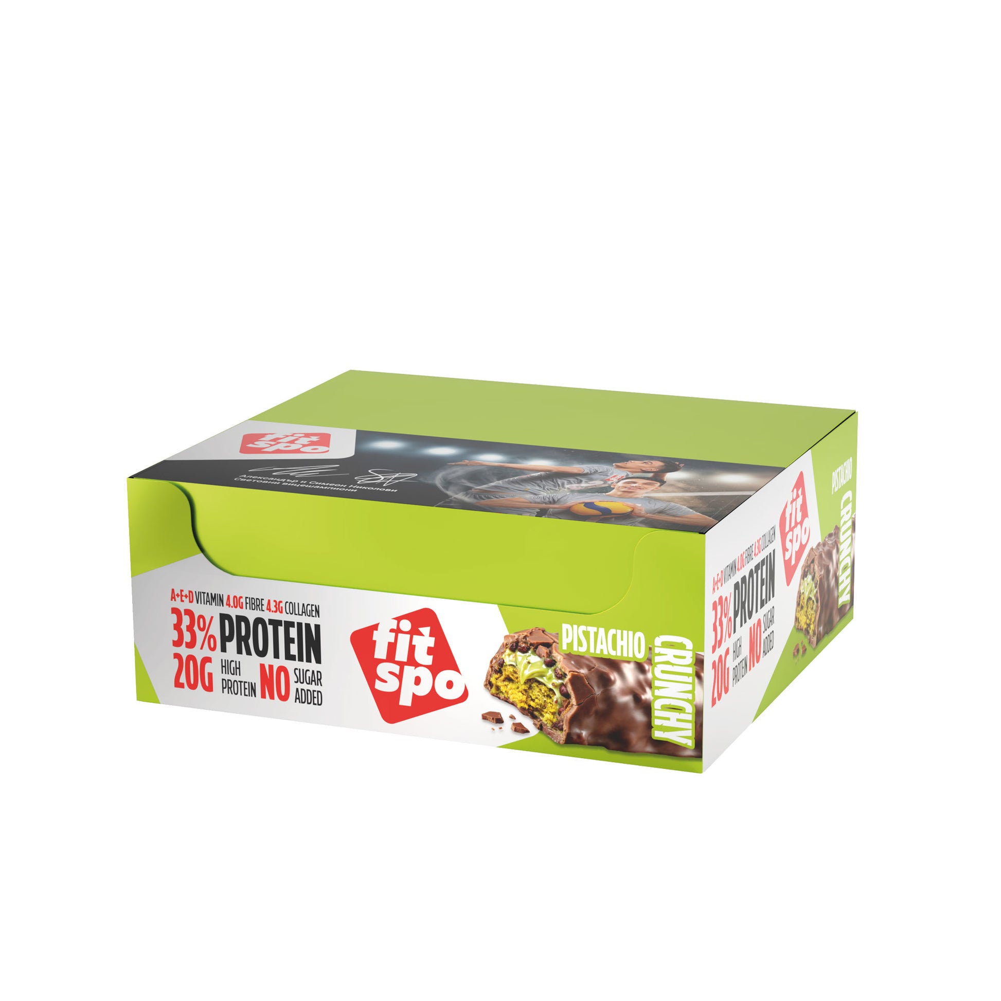 FitSpo CRUNCHY Pistachio е повече от протеинов бар. Той е ритуал в джоба ти – функционален десерт, когато искаш да си точен, без да се лишаваш: след тренировка, между храненията или в момента, когато ти трябва вкус, но и контрол.