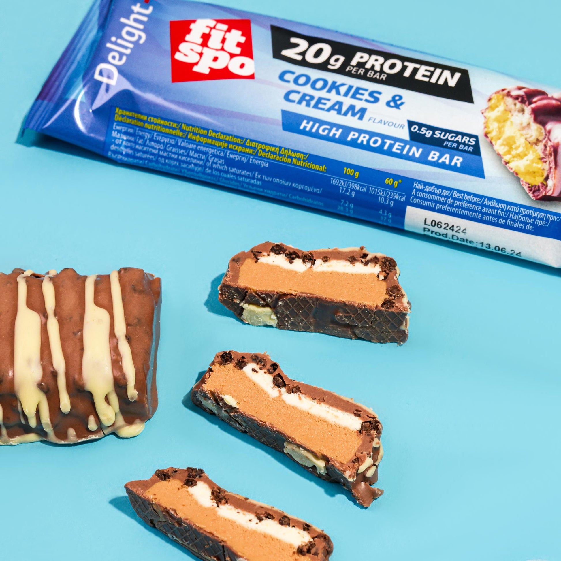 Многослоен протеинов бар с мек пълнеж с вкус на домашни бисквитки, фин слой ванилов крем и хрупкави какаови криспита, обгърнати от млечен шоколад. Високо съдържание на протеин и 3.7g фибри за дълготрайна ситост и подпомагане на храносмилането. Без добавена захар, консерванти, изкуствени подсладители и оцветители – само качествени протеинови източници, натурални овкусители, витамин А и пребиотик стевиол гликозид като естествен подсладител.