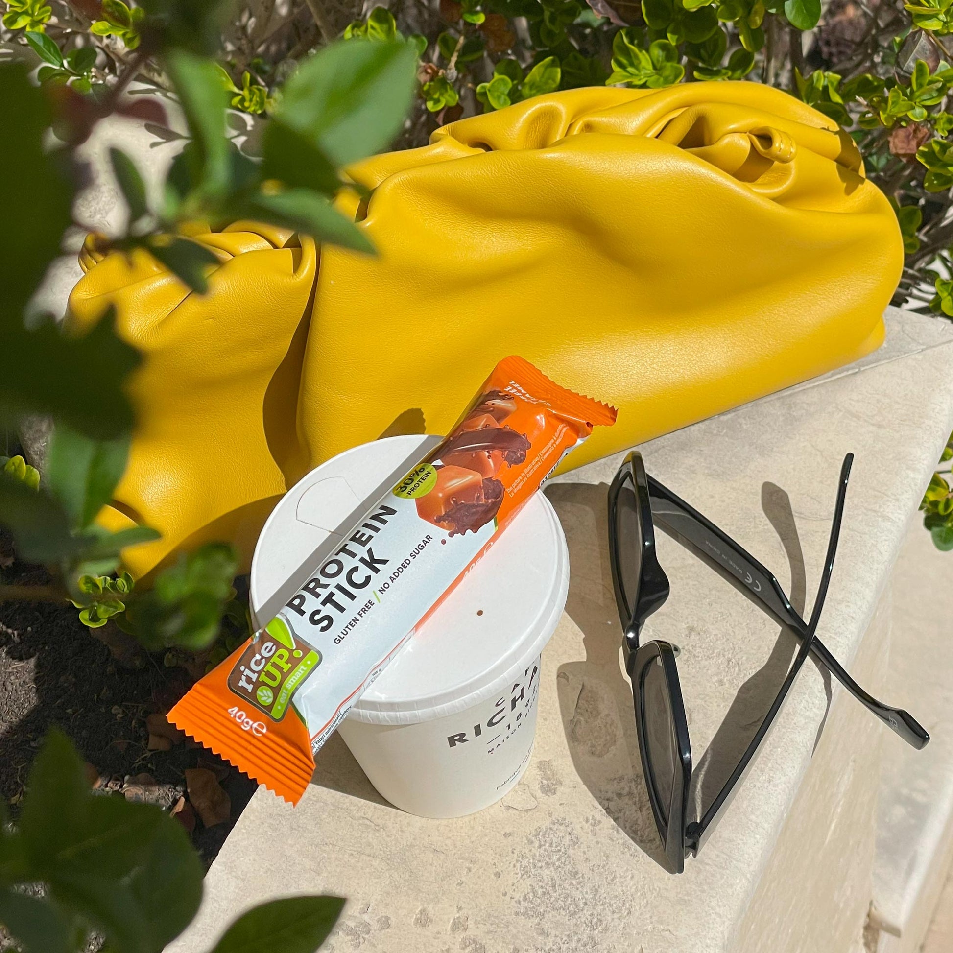 Наслади се на върховното удоволствие с нашия протеинов стик RiceUP! Tofee Caramel – здравословен десерт, който не прави компромис с вкуса! Със своите 30% протеин, без добавена захар, без глутен и без палмова мазнина, той е идеалният, балансиран снакс за активни хора. Всяка хапка разкрива мек протеинов пълнеж и нежен слой златист карамел, обвити в изкусителен млечен шоколад – истинско удоволствие за сетивата, без угризения. Със своя джобен формат, RiceUP! протеинов стик е идеален on-the-go заряд по всяко време на деня – в офиса, в училище, преди или след тренировка, със чаша ароматно кафе и дори на път.