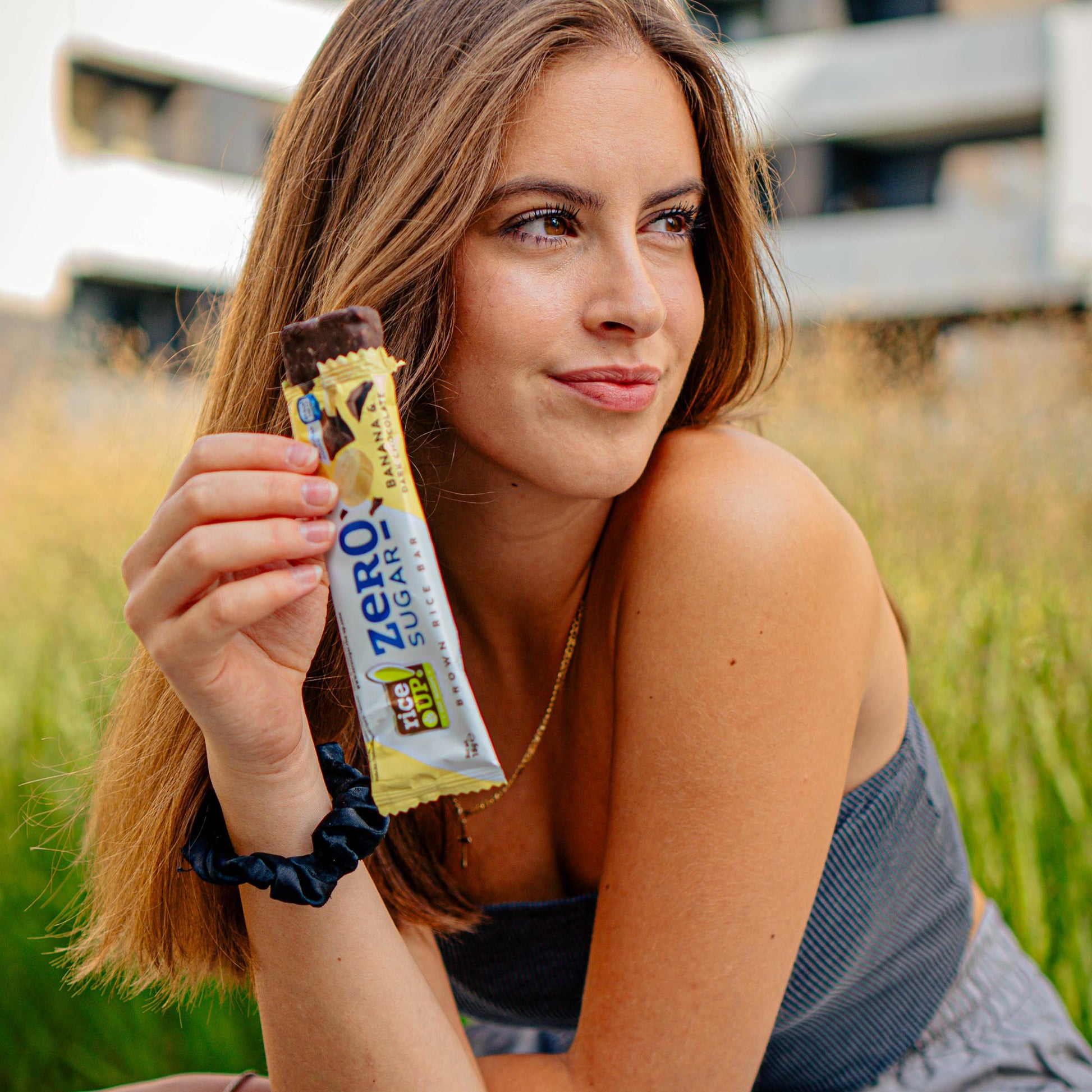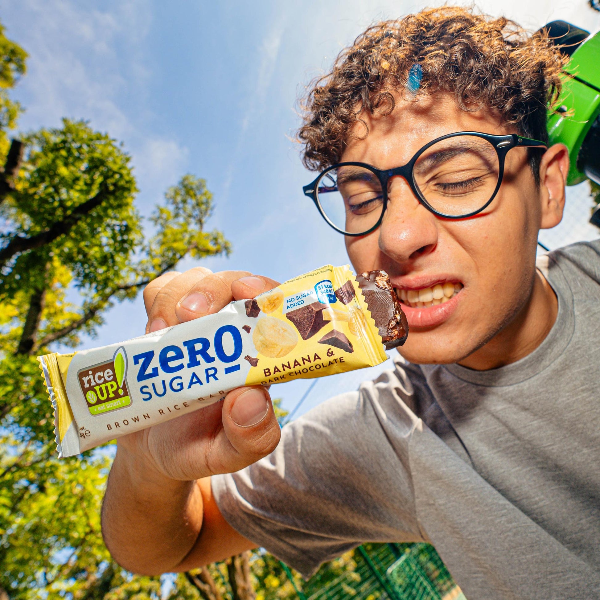 Оризов бар RiceUp! ZERO SUGAR е изцяло натурален, безглутенов бар от пълнозърнест кафяв ориз без добавена захар, покрит с плътен тъмен шоколад, без захар и портокалово масло. Лек и вкусен, здравословен десерт за забързаното ежедневие, който ще консумирате без чувство за вина. Ще се превърнат в любимия нискокалоричен и здравословен десерт с по-малко от 80 калории в офиса, преди или след тренировка, на поход и дори в кутията за обяд на вашето дете! Оризов бар RiceUp! ZERO SUGAR е с нисък гликемичен индекс и консумацията му не влие рязко на нивата на кръвна захар, при което енергията се освобождава постепенно и равномерно.