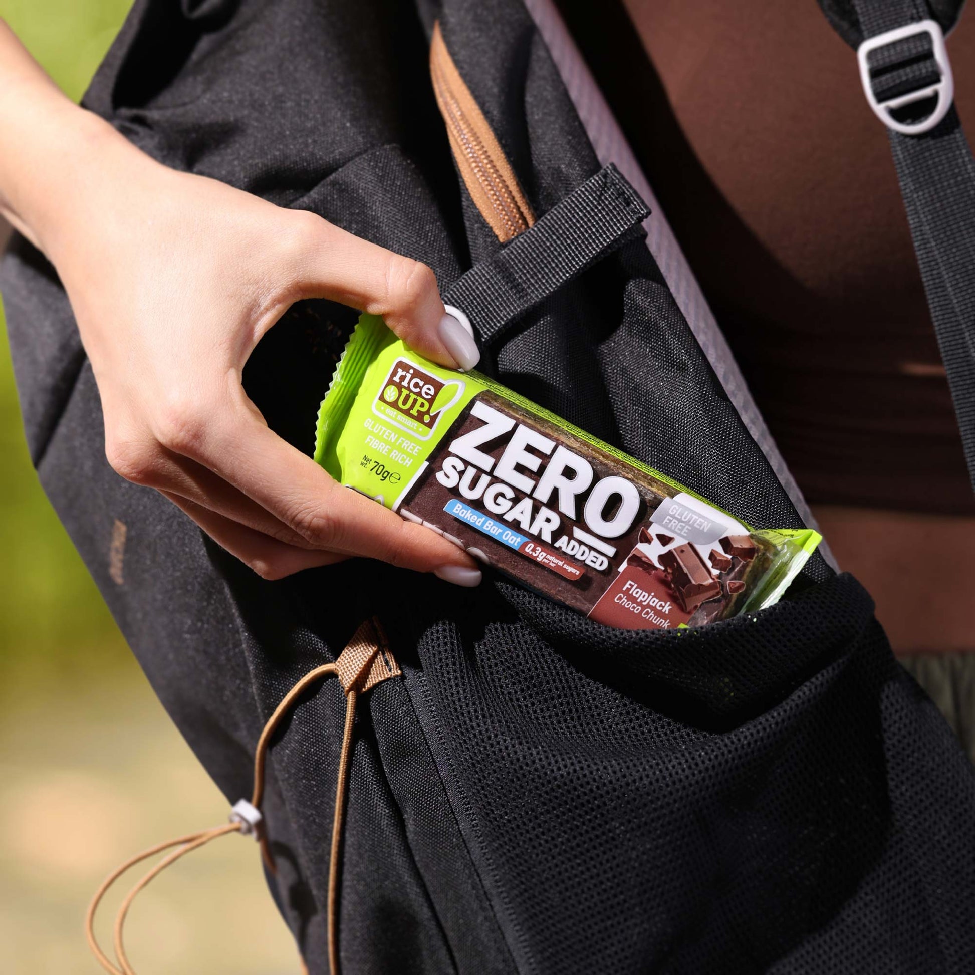 Шоколадов кувертюр и парченца шоколад без добавена захар върху плътна овесена основа – интензивен истински какаов вкус, дъвчаща текстура и плавна енергия, която се усеща дълго.