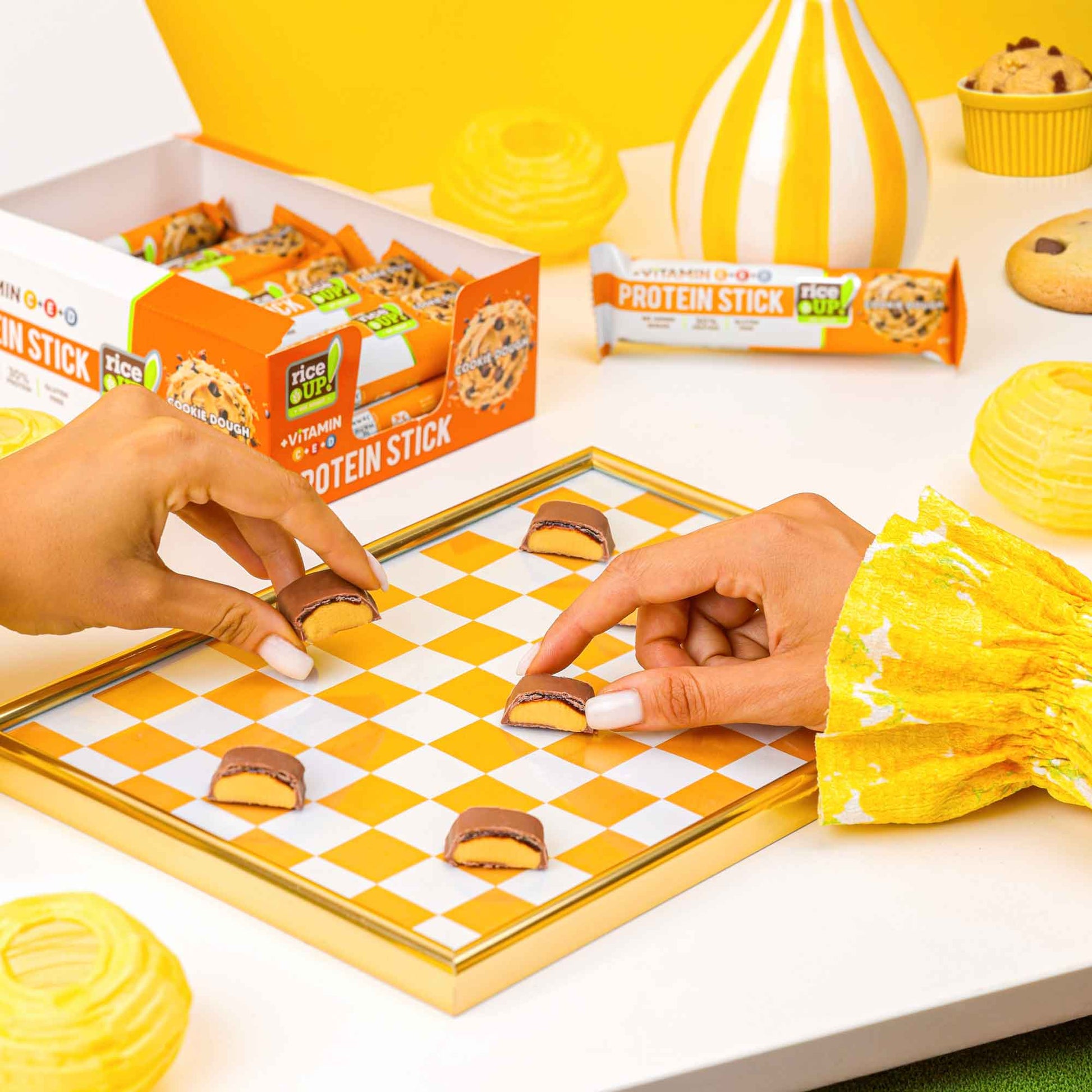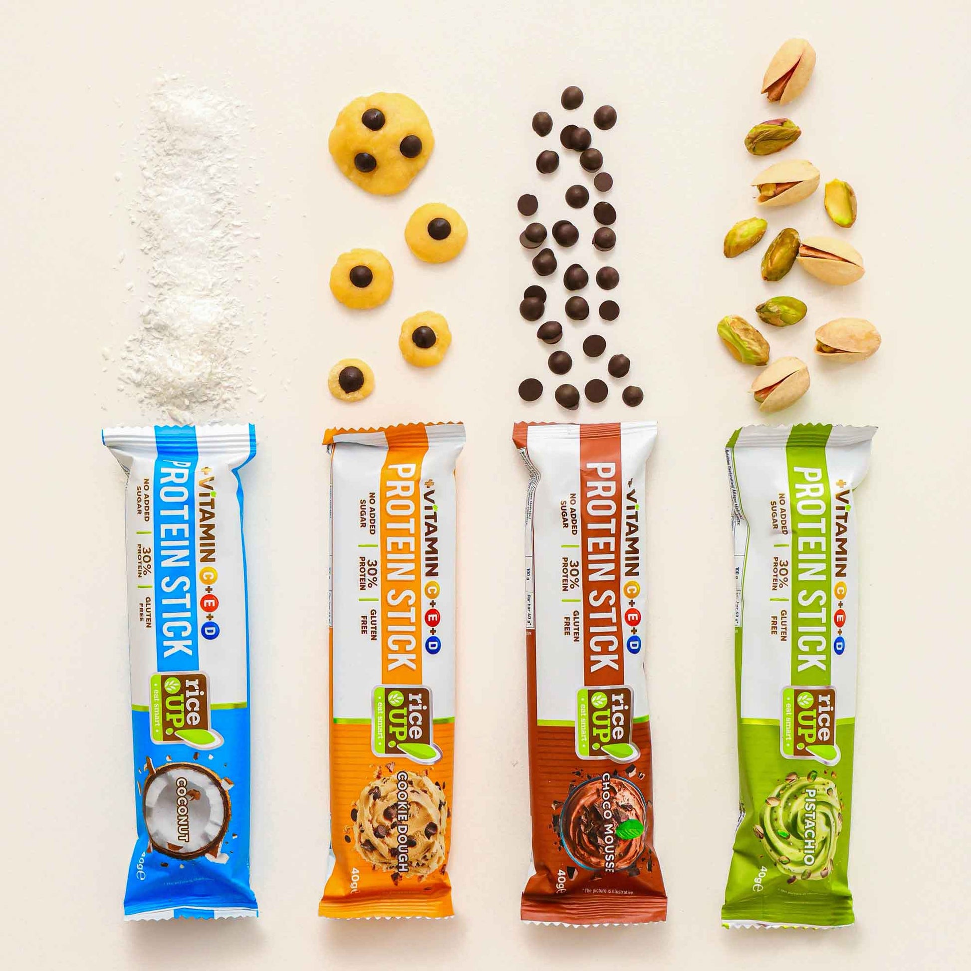 Представяме ти надградената версия на любимия джобен снак от RiceUP! – с повече ползи, още по-добър вкус и функционалност в движение. RiceUP! Витаминов Протеинов стик е създаден за онези, които държат на здравословния начин на живот, без да правят компромис с удоволствието от храната. С 30% протеин, без добавена захар, без глутен и без палмова мазнина, той е балансирана и вкусна алтернатива за активните през деня. Покрит с истински млечен шоколад и с неустоимо мек пълнеж и кремообразен завършек, този стик е повече от десерт – това е малък момент на наслада с голяма полза за тялото ти. Сега с добавени витамини C, D и E, които играят ключова роля за поддържане на имунната система, защита от оксидативен стрес и здравето на костите и кожата. Комбинацията им засилва ефективността на всяка отделна съставка, като така продуктът става още по-полезен за ежедневния ти ритъм.