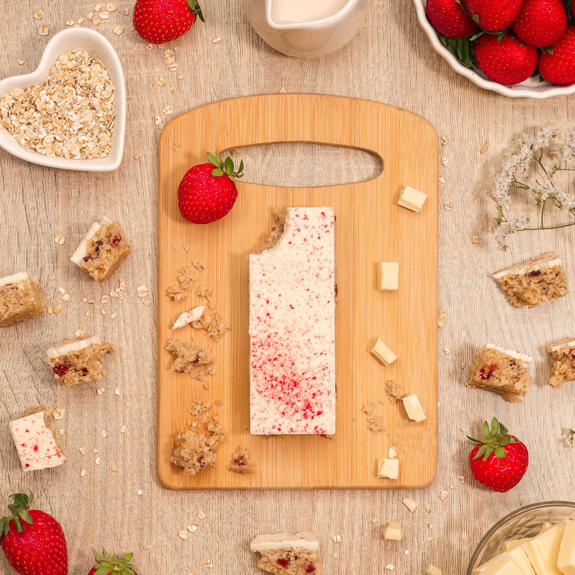 Истински парченца ягода и нежен йогурт топинг върху плътна овесена основа – десертен вкус на ягодов чийзкейк с балансирана сладост и устойчива енергия през деня.